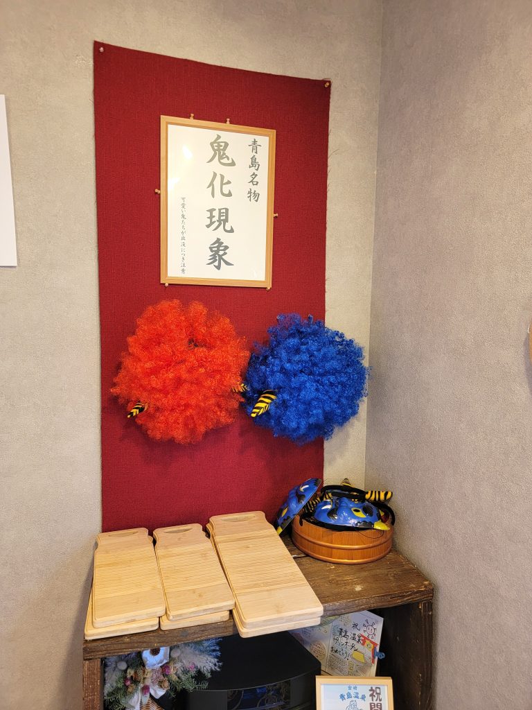 (店内にはお客様用にカラフルなモジャモジャのカツラなど「鬼変身」セットもありましたよ。)