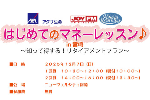 2025.10.25 イベントおすすめ【参加者募集】はじめてのマネーレッスン♪in宮崎~知って得する!リタイアメントプラン~
