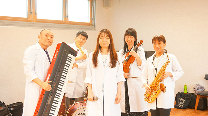 まなべる薬局グループから生まれた「マナベルバンド」は、社内に潜んでいた音楽好きが集まり結成されたユニークなバンドです。ドラム2名、サックス、ピアノ、ギター、バイオリンと多彩なメンバー構成で、ジャンルもスタイルもバラバラ。でもだからこそ、ここにしかない新しい音楽が生まれるはずです。薬局の理念である「笑顔を作る」想いを音楽に込めて演奏します。聴いてくださる方々と一緒に、元気と楽しさを分かち合えるバンドとして活動していきたいと思います。