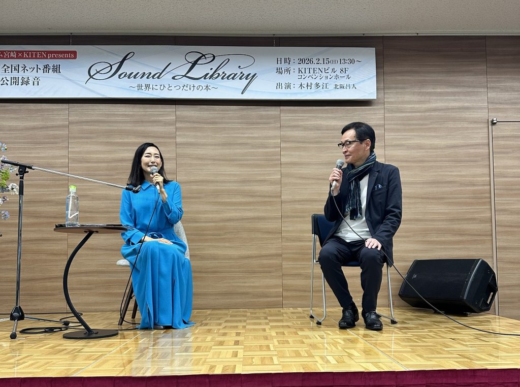 2月15日(日)にKITENビル8Fコンベンションホールで、俳優の木村多江さんと脚本家の北阪昌人さんを迎えて行われた、「JFN全国ネット番組『Sound Library~世界にひとつだけの本~』の公開録音が無事終了しました。