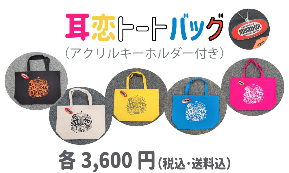 耳恋のTシャツと同デザインのトートバッグ(アクリルキーホルダー付き)